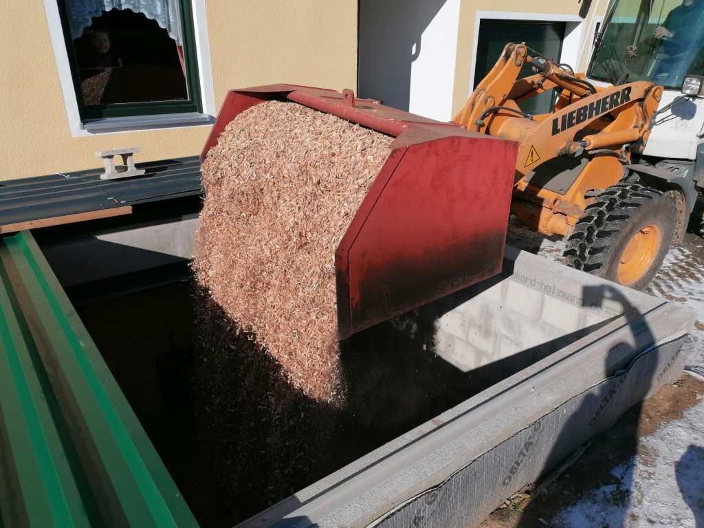Hier ein paar Bilder unserer ersten Befüllung unseres Hackschnitzel-Bunkers
